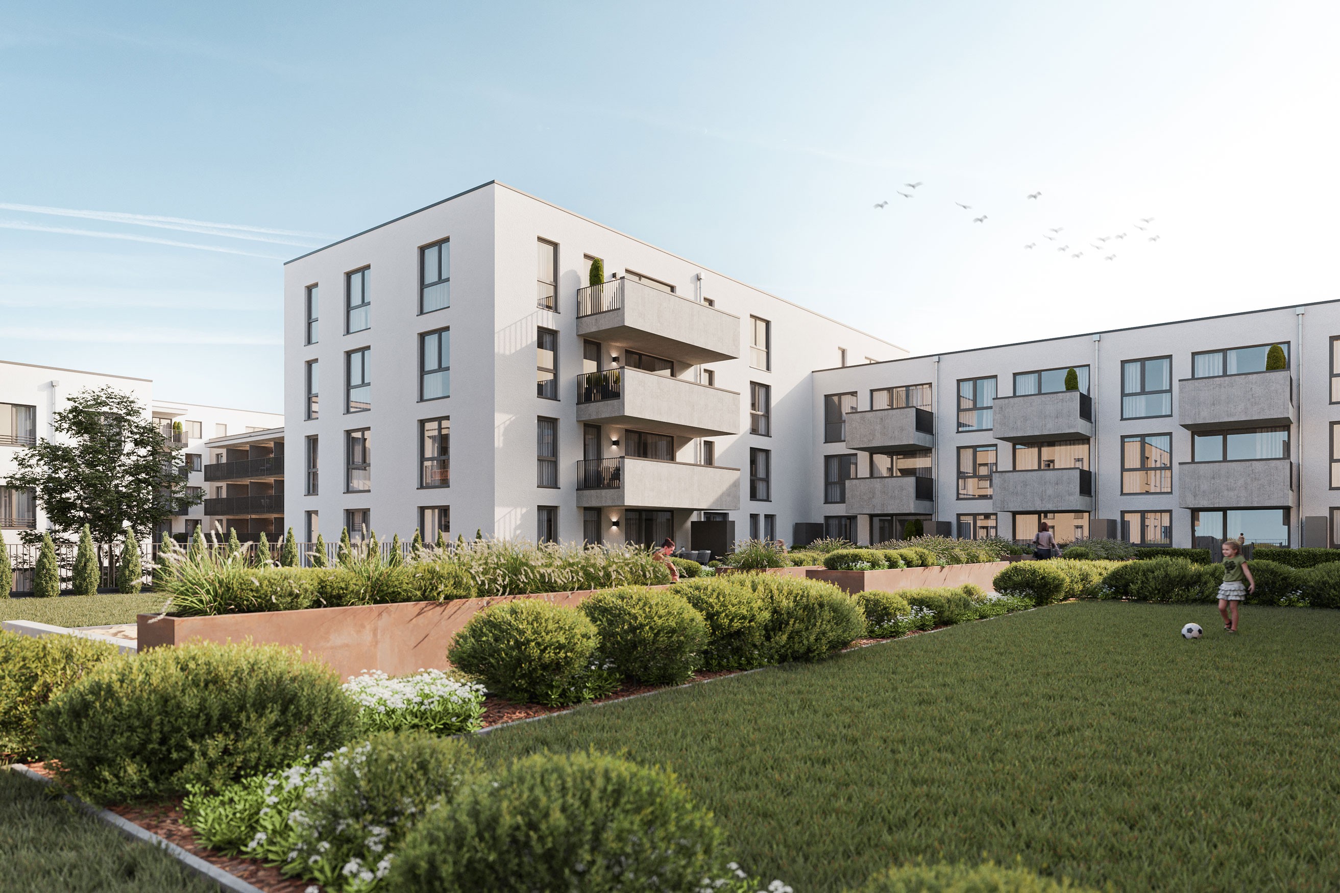In Heidenheim an der Brenz entsteht mit dem Brenzpark-Quartier ein vielseitiges Neubauprojekt, das Wohnen, Arbeiten und gemeinschaftliche Nutzung miteinander verbindet. Auf rund 9.200 m² entstehen über 100 Wohnungen sowie ergänzende Gewerbeflächen, von betreutem Wohnen und Pflegewohnen bis hin zu Büros, Arztpraxen und Gastronomie. Zur Darstellung des Projekts wurden zahlreiche Innen- und Außenvisualisierungen entwickelt. Diese geben einen umfassenden Einblick in die unterschiedlichen Bereiche des Quartiers und machen sowohl die architektonische Struktur als auch die geplante Nutzung erlebbar. So entsteht ein klares Gesamtbild, das die Vielfalt und den Charakter des Projekts verständlich vermittelt.