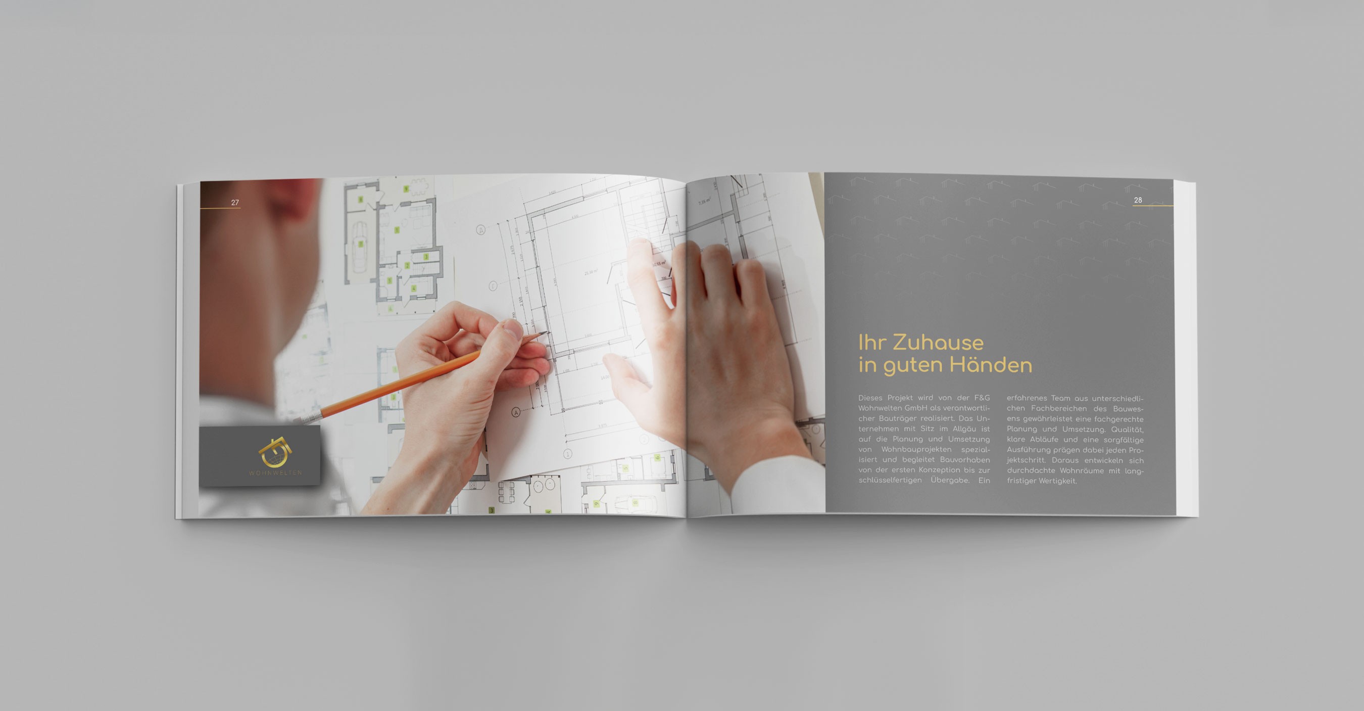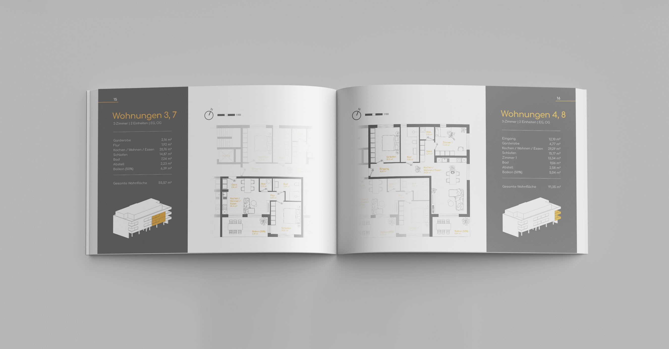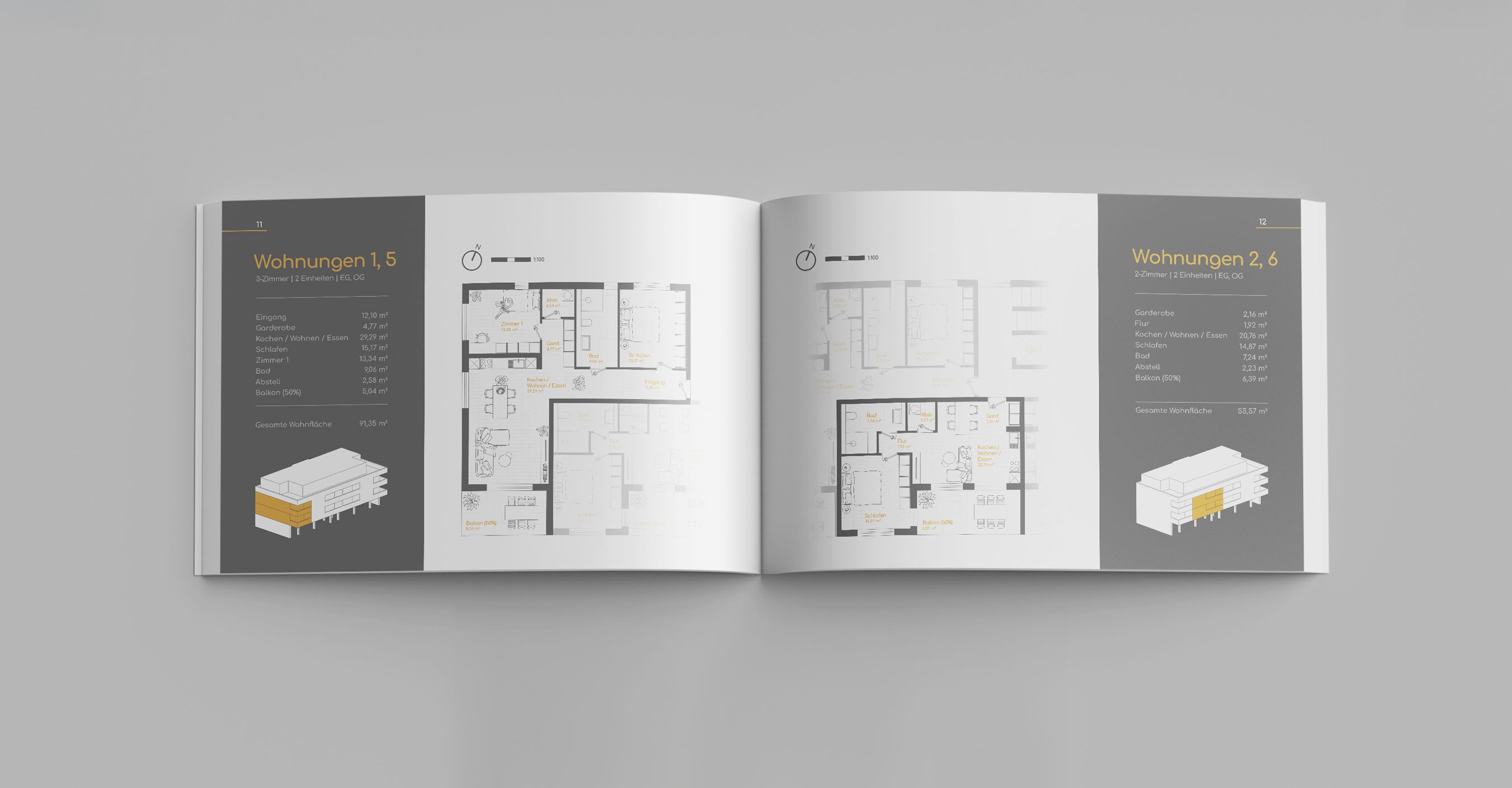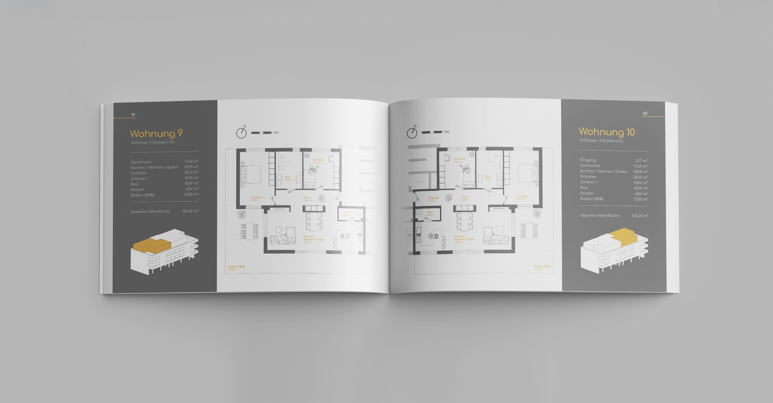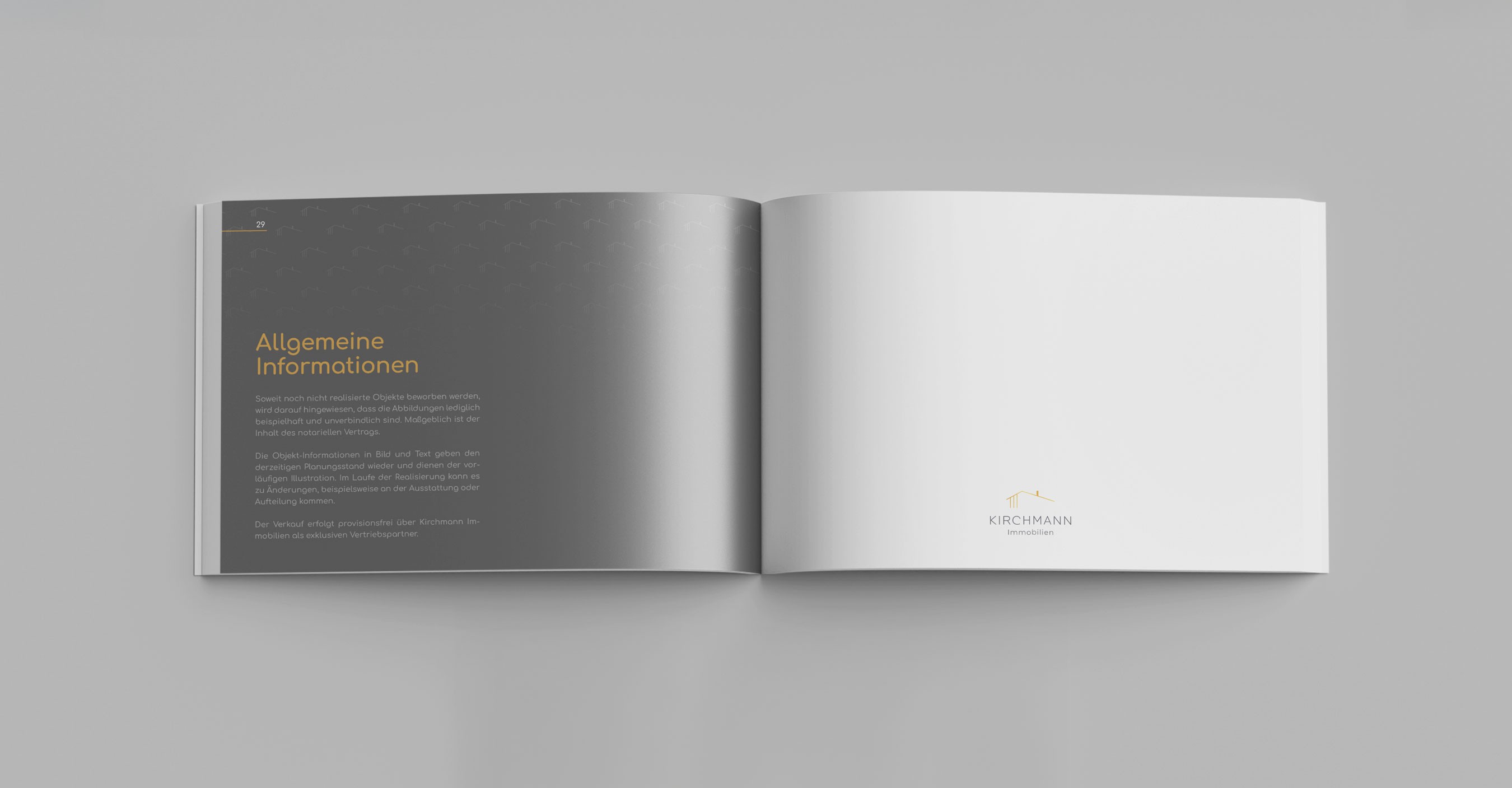 In Heimenkirch entsteht mit dem Projekt „Sonnenhang Leiblachufer“ ein neues Wohnquartier, das in drei Bauabschnitten realisiert wird. Für die Vermarktung wurde zunächst der erste Bauabschnitt aufbereitet und gezielt für Interessenten zugänglich gemacht. Im Mittelpunkt stand die Entwicklung eines Exposés, das auf das Corporate Design von Kirchmann Immobilien abgestimmt ist und somit im bestehenden Erscheinungsbild in Anthrazit und Gold gestaltet wurde. Bestehende Innenvisualisierungen wurden integriert und durch neu aufbereitete Grundrisse sowie passende Texte und eine gezielte Bildauswahl ergänzt. So entsteht eine klare und stimmige Darstellung des Projekts, die den ersten Bauabschnitt kompakt vermittelt und Interessenten einen guten Überblick des Bauvorhabens ermöglicht.